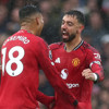 İlk yarının 45+5. dakikasında bu sefer Manchester United'da, Casemiro ikinci sarı karttan kırmızı kartla oyun dışı kaldı.