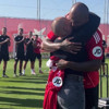 Oldukça duygusal anların yaşandığı antrenmanda, 8 numaralı forma hediye edilen Pamela, daha sonra takımla fotoğraf da çektirdi.