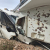 Mardin’in Mazıdağı ilçesinde kum boşaltmak isteyen sürücünün damperini kaldırdığı kamyon, park halindeki bir minibüsün üzerine devrildi.