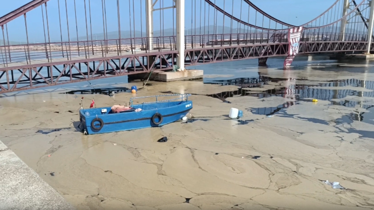 Limandaki teknelerin etrafını saran müsilaj, su yüzeyinde tabaka oluşturdu.