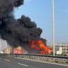 Sürücü yangını fark ederek aracı sağ şeride çekip inerek durumu 112 Acil Komuta Merkezi'ne bildirdi. Merkez bölgeye polis, sağlık ve çok sayıda itfaiye ekibi sevk etti. Bu sırada tankeri alevler, gökyüzünü ise kara dumanlar sardı. Zaman zamanda alev patlamaları yaşandı.