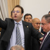 Alp'in sözlerine tepki gösteren AKP Elazığ Milletvekili Ejder Açıkkapı, "Artistlik yapıyorsun sen, artiste bak. Otur yerine" dedi. Alp, "Senin yüzünden böyle hırsızlar doldu buraya. Bürokrat falan değil, müteahhit o. Senin kafanı koparırım" diye Açıkkapı'nın üzerine yürürken, Açıkkapı da "Bu iftirayı atan şerefsizdir" diye bağırdı. İkili birbirinin üzerine yürüdü araya milletvekillerinin girmesiyle kavga sözlü tartışmaya dönüştü. Bunun üzerine komisyon Başkanı Mehmet Muş, komisyona 50 dakika ara verdi.