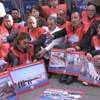 - Bir milyondan fazla çocuk okul dışında ya. Bir öğün yemek yiyemiyorlar. Buradaki öğretmenlerin hepsi sizin çocuklarınızın açlığına, susuzluğuna şahitlik ediyor. Bakan da kendi çocuğunu özel okula gönderiyor. Biz buna isyan ediyoruz. Mesleki haklarımız yok sayılmış. Okullarınızın temel ihtiyaçları karşılanmamış. Şuna bakar mısınız yani sürükleye sürükleye. Yüzlerce polisle ülkenin her bir yerinden gelmiş Eğitim-İş temsilcilerine yaptıklarına bak. Gerçekten sizler adına biz utanıyoruz.