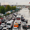 Fatih Sultan Mehmet Bulvarı'nda Şaşmaz mevkii de sağanak nedeniyle göle döndü. Yoğun trafiğin olduğu bulvarda ulaşım durma noktasına geldi ve uzun araç konvoyu oluştu.