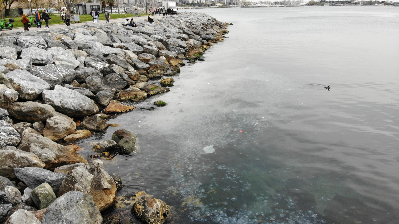 Kadıköy Moda Sahili'nde deniz yüzeyini çok sayıda denizanasının kapladığı görüldü. Kayalıklara yakın noktada toplu halde bulunan denizanaları, çevredeki vatandaşların tepkisini çekti.
