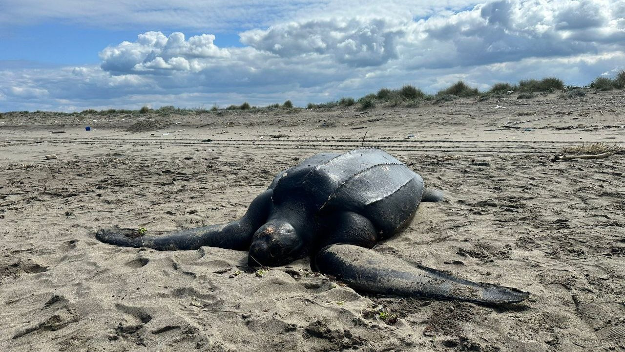 Akdeniz'de yaşayan ancak Türkiye çevresinde nadir görülen deri sırtlı deniz kaplumbağası (Dermochelys coriacea), Sakarya'nın Karasu ilçesindeki sahilde ölü bulundu.