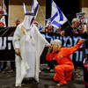 Hapishane tulumları giymiş birkaç göstericinin Gazze Şeridi'nde işlenen savaş suçları ve insanlığa karşı suçlardan dolayı Uluslararası Ceza Mahkemesi’nin (UCM) hakkında tutuklama kararı çıkarttığı Başbakan Netanyahu'nun hapse atılmasını talep eden pankartlar açtığı görüldü.