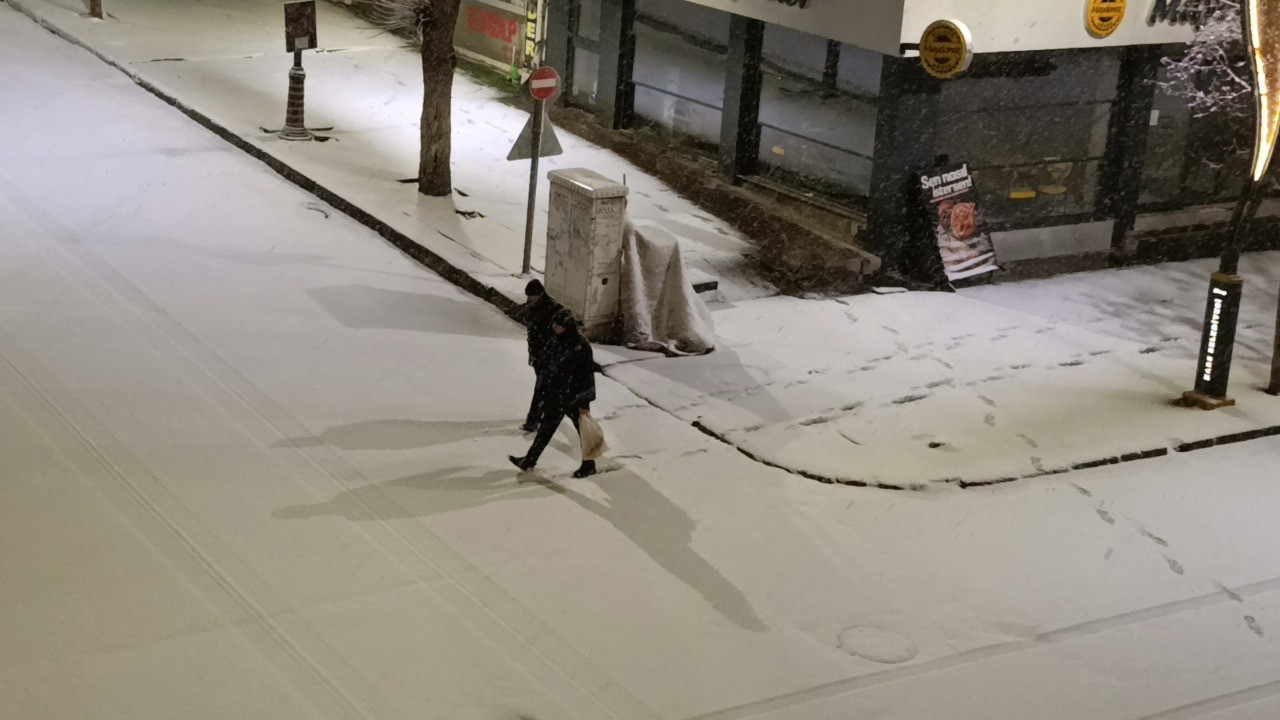 Kent merkezinde park halindeki araçların üzeri dakikalar içinde karla kaplanırken, hava sıcaklığı ise eksi 7 dereceye kadar düştü.