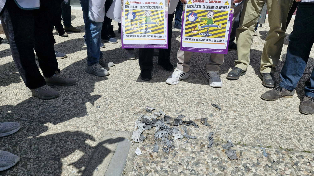 Açıklamanın ardından emekliler elektrik faturalarını yaktı.