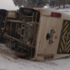 Mersin Erdemli'de öğrencileri taşıyan servis minibüsü karlı ve buzlu yolda kayarak devrildi.