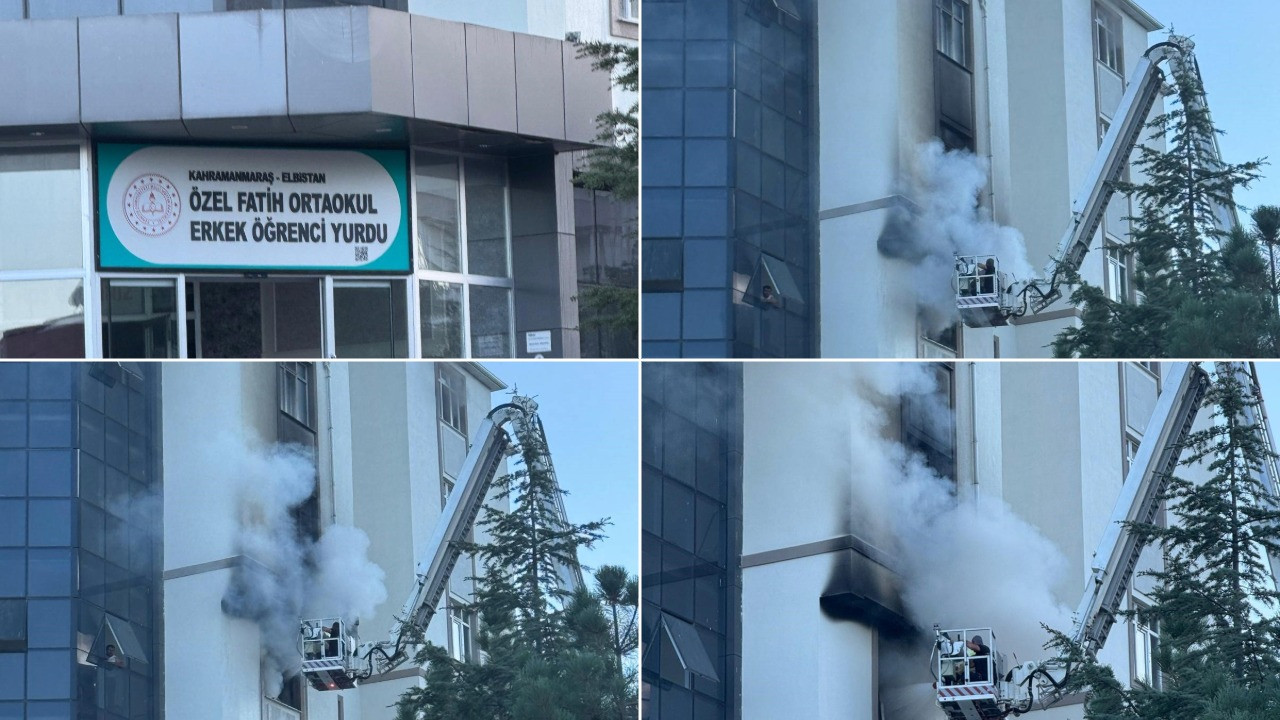 Elbistan ilçesine bağlı Yeşilyurt Mahallesi’nde yer alan Özel Fatih Ortaokul Erkek Öğrenci Yurdu'nda henüz belirlenemeyen bir nedenle başlayan yangın, kısa sürede binanın üst katlarını sardı.