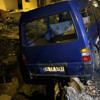 Çarpmanın etkisiyle bir minibüs bahçe duvarında asılı kalırken, sürüklenen bir otomobil de bina duvarıyla başka bir aracın arasında sıkıştı.