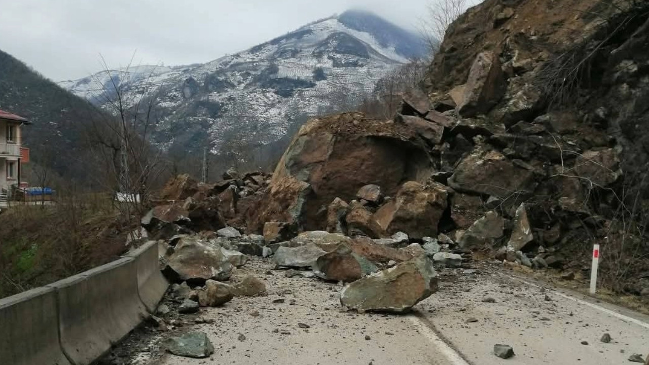 Heyelanın ardından dev kaya parçalarının yola düşmesi sonucu karayolu trafiğe kapandı. Heyelan nedeniyle bölgede ulaşım tamamen dururken, karayolunda ise araç trafiği oluştu.