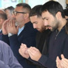 Orkun Kökçü ve ailesi, cami bahçesinde taziyeleri kabul etti.