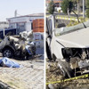 Çarpmanın etkisiyle ikiye bölünürken olay yerine çok sayıda polis, sağlık ve itfaiye ekipleri sevk edildi.
