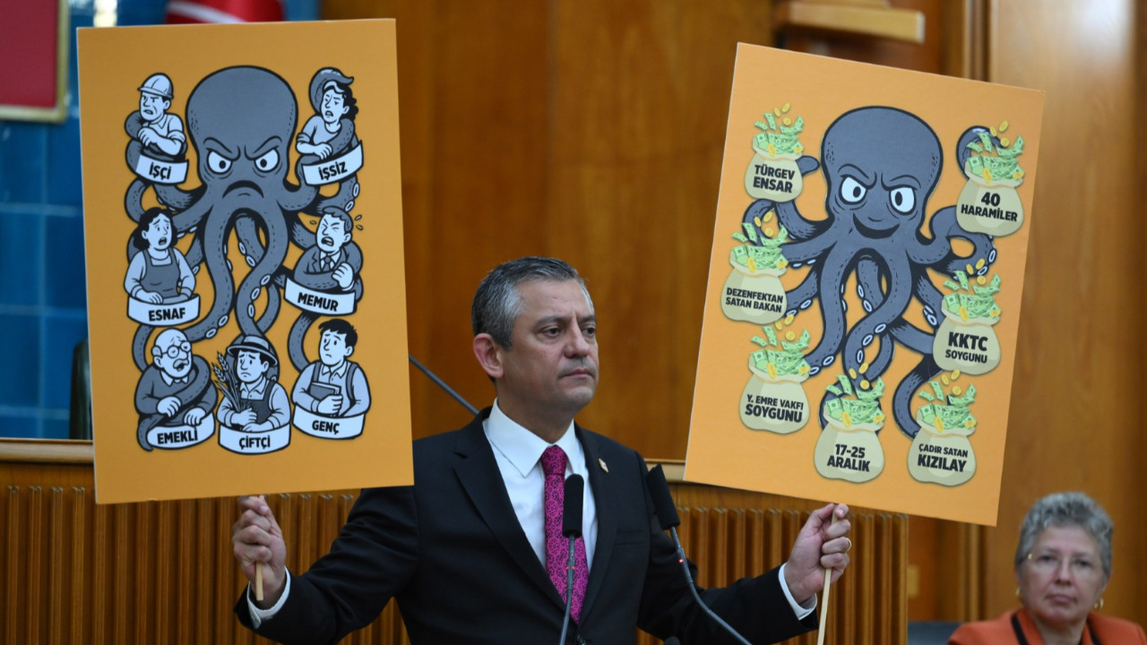 "İstanbul'dan Türkiye'ye ve yurt dışına uzanan ahtapotun kolları bir bir deşifre oluyor" sözlerine yanıt veren Özel, "Sadece kendi gördüğü bir ahtapota milleti inandırmaya çalışıyor. Yanlış bir iş. Bir şeyi bir kişi görüyorsa bunun psikolojide, psikiyatride bir adı var.”