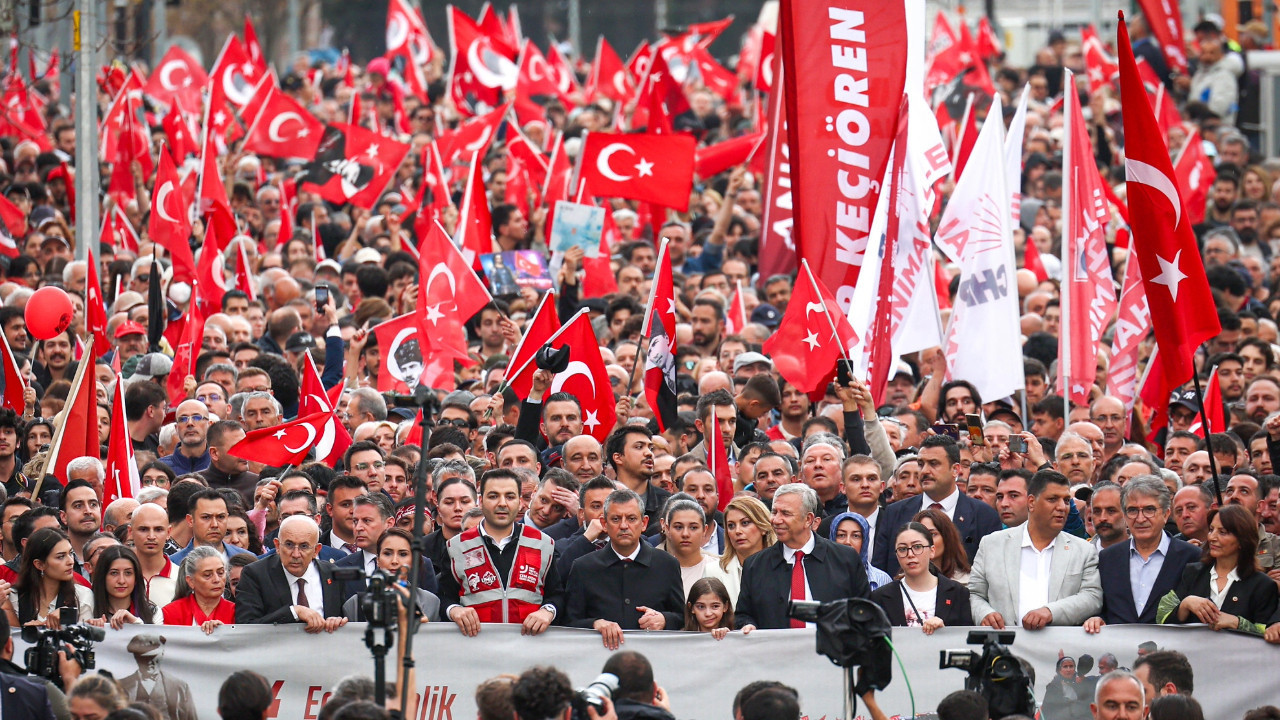 - Burada bizi durdurmak isteyenlere, bize engel olmak isteyenlere bir kez daha milletin gücünü ve bizim onlardan aldığımız gücü göstermek isteriz. Buradan sonra hep birlikte sel olup Anıtkabir’e doğru akacağız. Birazdan Ankara’nın dört bir yanından oluk oluk gelen herkesle… Şu güzelliğe bakın. Varsınız ya, sizin kadar da bu tarafta var. Hepsini selamlıyoruz. Birazdan hep birlikte kucaklaşacağız, hep birlikte yürüyeceğiz. 19 Mart darbesi bu milletin seçme hakkına, bu milletin kendisini kimin yöneteceğine karar verme hakkına, Atatürk’ün emaneti sandığa darbe girişimidir. O darbeyi önce Saraçhane’de yedi gece boyunca direnenler bozdu.