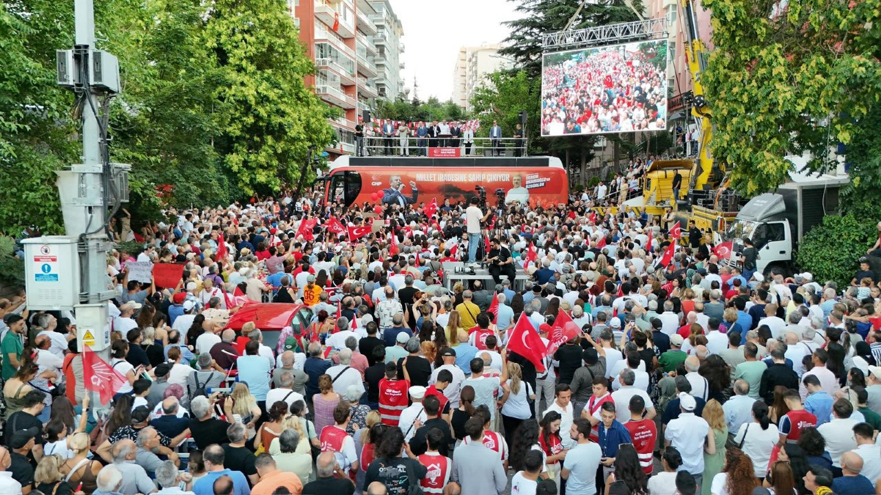 - Son yerel seçimlerde, ‘Gitmeyecekler, yenilmeyecekler’ algısı Mansur Başkanla, Ekrem Başkanla yerle bir oldu. Yüzde 25’lik cam tavanı parçalayacağız dedim, 31 Mart akşamı Atatürk’ün partisi CHP, Türkiye’nin birinci partisi oldu. Bu ülke değişecek. Adaletle, demokrasiyle değişecek. Bizim Cumhurbaşkanımız bu ülkede yoksulluğu bitirecek adaleti getirecek, köylüyü yeniden milletin efendisi yapacak, en düşük emekli maaşı asgari ücret yapacak, asgari ücret onurlu bir maaş olacak. Memuru ay sonunu düşünmeyecek.”
