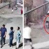 Daha sonra bir erkeğin aslanın kaçtığı yerden elinde bir aletle dışarı çıkması ve aslanı kovalaması kameralara yansıdı. Kaçan vahşi hayvan bu kez de sokağın ilerisindeki çocuklara saldırdı.