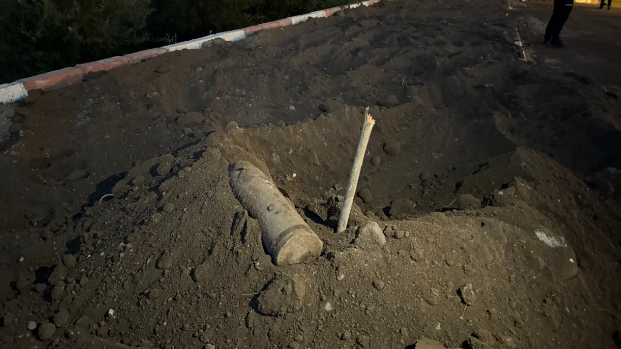 Erzurum'da bir petrol istasyonunun peyzaj çalışması sırasında patlamamış 2 top mermisi bulundu.