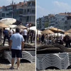 Baskında şezlonglardan para toplayan kişiler ile zabıta ekipleri arasında tartışma çıktı. Kısa sürede büyüyen tartışma kavgaya dönüştü.