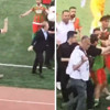 Maçın bitiş düdüğünün ardından yaşanan kavga, stadı adeta savaş alanına çevirdi.