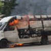 Aracın içinden aldığı şişedeki benzini aracın üzerine döken şahıs, panelvan aracı ateşe verip kaçtı.