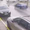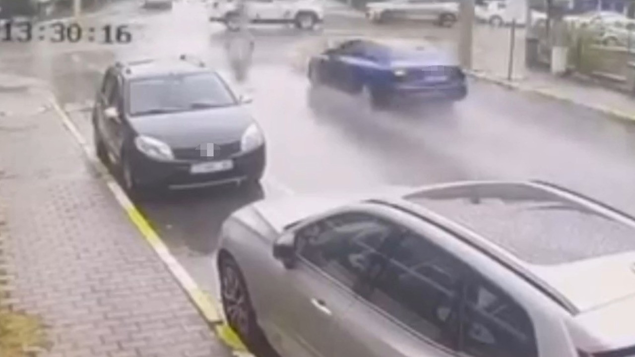 Kaçış sırasında sürücü caddede yürüyen bir kadına çarptıktan sonra park halindeki otomobillere çarparak kaldırıma çıktı.
