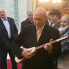 Kremlin’in resmi Telegram kanalından paylaşılan görüntülerde Putin’in, profesyonel müzisyenler eşliğinde sazın tellerine birkaç basit akor vurduğu görülüyor.