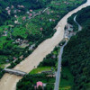 Sel sonrası bölge havadan görüntülenirken, derenin taşkınla birlikte çamurla kaplandığı görüldü.