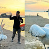 Vatandaşın, "Sinirlenmek yok. Aferin. Kızmak yok, kızmak yok. Öyle sert hareketler yok" diye konuşup, pelikanı karada balıkla beslemeye devam ettiği anlar da görüntüye yansıdı. Pelikan, yere düşen balığı da alıp yedi.