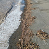 Hatay'ın kıyı ilçelerinde etkili olan şiddetli yağış Akdeniz’in kıyılarını kütüklerle kaplarken, denizin rengi kahverengiye döndü.
