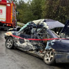 Anadolu Otoyolu bağlantısında meydana gelen kazada yolcu otobüsünün çarptığı otomobil bariyerlere girdi.