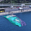 Trendyol 1. Lig 2024-2025 sezonu şampiyonu Kocaelispor’un dev bayrağı, Kocaeli Büyükşehir Belediyesi tarafından Fatih Sultan Mehmet Köprüsü’ne asıldı.