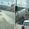 Hatay'ın Belen ilçesinde seyir halinde olan beton mikseri, aşırı yükleme sonucu dönüş esnasında yola beton döktü.
