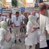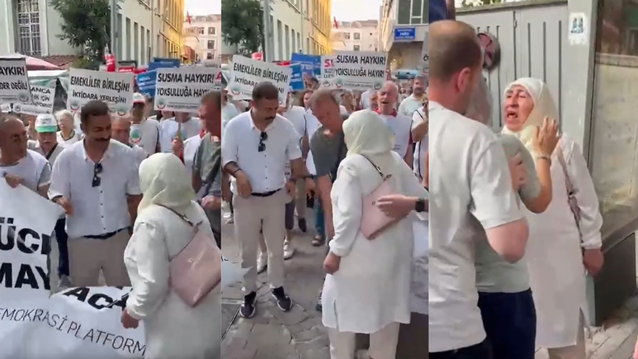 Gruptakiler, Hamamyolu Caddesi üzerinde yürüdüğü sırada "AKP mezara halk iktidara" sloganlarını atarken, güzergah üzerinde bulunan AK Parti üye standından bir kadın, kitlenin önüne geçerek üzerinde "Sefalet ücretine teslim olmayacağız" yazılı pankarta saldırdı.