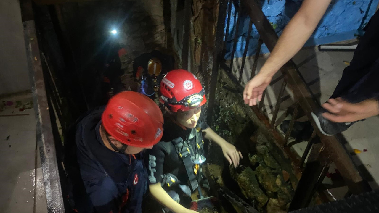 Burada bir süre havanın düzelmesini bekleyen gençler, saat 17.30 sonrası sağanak ve rüzgarın arttığını fark edince durumu 112 Acil Çağrı Merkezine bildirdi. İhbarın ardından olay yerine Deniz Polisi, itfaiye ve AFAD ekipleri sevk edildi. Deniz polisi dev dalgalarda yüzerek ulaştı Deniz Limanı Şube Müdürlüğüne Bağlı Gemi Adamları ekipleri, hava koşullarından dolayı mağaraya botla giremese de, bir kurbağa adam dev dalgalar olmasına karşın yüzerek mağaraya ulaştı. Ardından mahsur kalan kadına üşümemesi için polis dalgıç kıyafeti veren kurbağa adam, kara ekipleri ulaşıncaya kadar da gençlere refakat etti.