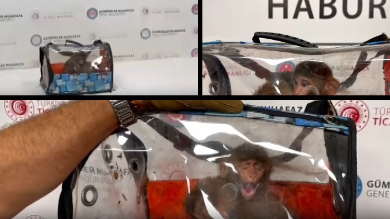 Ticaret Bakanlığı'na bağlı Gümrükler Muhafaza ekipleri, Habur Gümrük Kapısı'nda yasa dışı ticareti yapılmaya çalışılan 3 şahin ile 2 makak maymununa el koydu.
