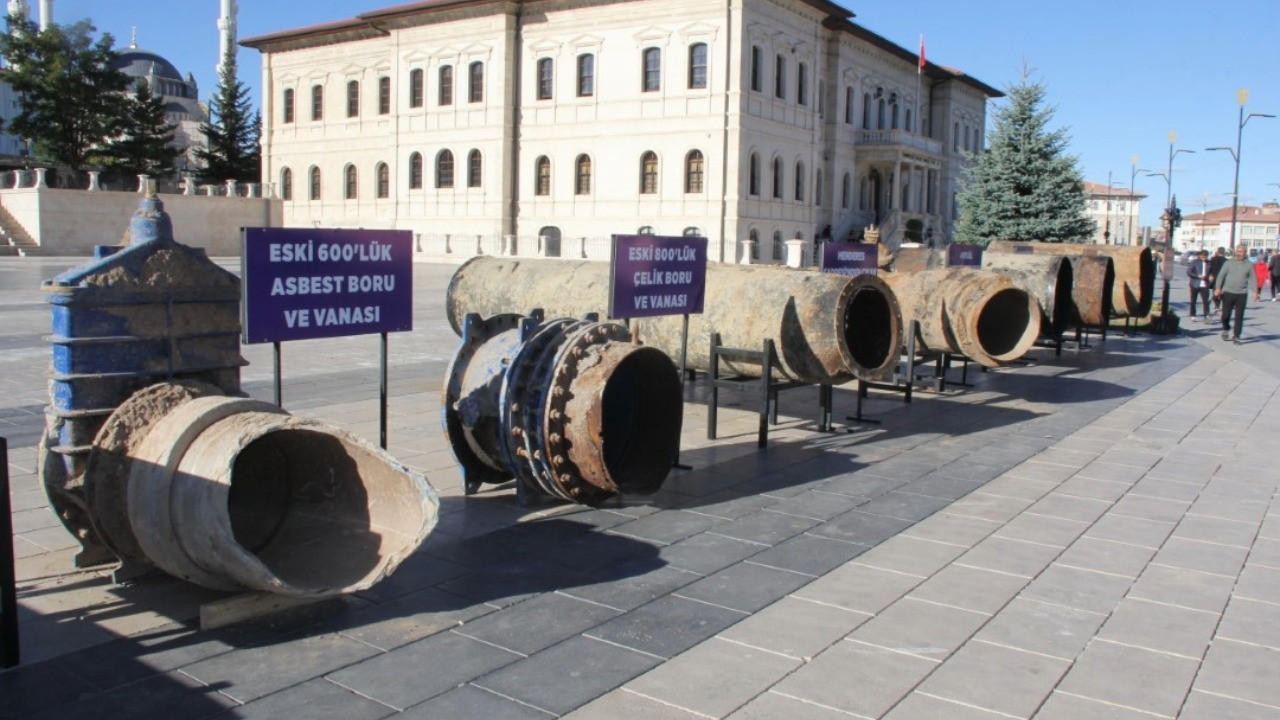 Sivas Belediyesi altyapı çalışmaları kapsamında değişimini yaptığı çürümüş içme suyu çelik su borularını vatandaşın görmesi için kent meydanında sergilemeye başladı.