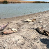Gölette oksijensiz kalan balıklar telef olup kıyıya vurdu.