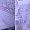 Görüntülerde sürücüsüz motosikletin caddede ilerlediği, ardından kaldırımda yürüyen yaya çarpmadan devrildiği görüldü.