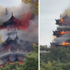 Çin'in Zhangjiagang kentindeki Fenguang Dağı'nda bulunan Wenchang Tapınağı, 12 Kasım'da çıkan yangında kül oldu.