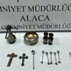 Şüphelinin ikametinde yapılan aramalarda, tarihi eser niteliği taşıdığı değerlendirilen 2 adet haç ile çeşitli dönemlere ait olduğu düşünülen malzemeler ele geçirildi.