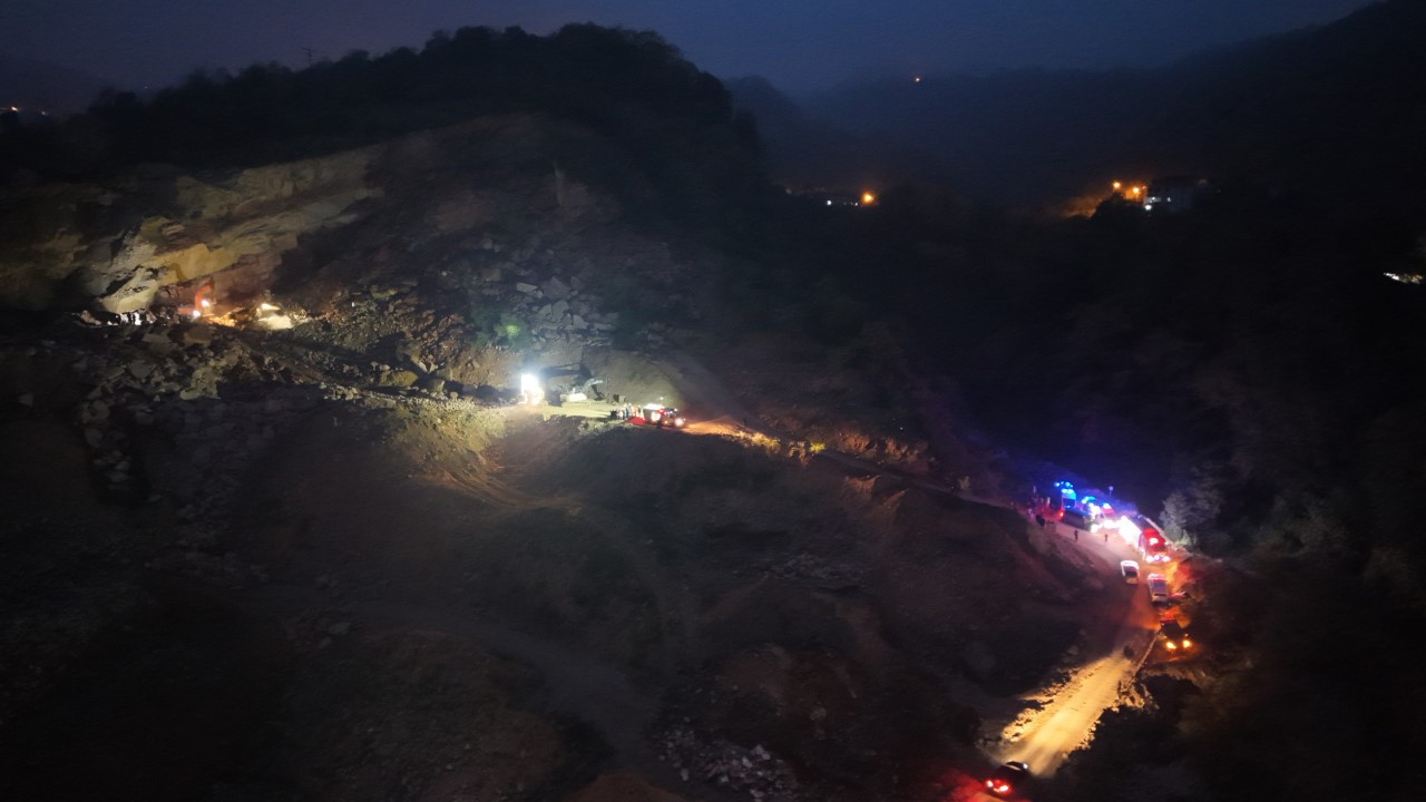 "Taş ocağında saat 12.00 sularında rutin işler kapsamında yapılan bir patlatma var. Ancak 16.30 sularında üst kotlardan bir kütle hareketi söz konusu. Şu anda kütlenin altında bir kamyon ve bir iş makinesi, sürücüsü ile operatörü bulunuyor. Şu anda burayı bilen arkadaşlarımızın tarif ettiği noktada çalışan iş makineleri var. Bu çalışmalara destek veren 20'ye yakın iş makinemiz var. AFAD, UMKE, jandarma ve 112'in ekipleri burada."