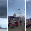 Plajdakilerin eşyalarını kucaklayıp kaçarken görüntülendiği videolarda şemsiyelerin nasıl havaya uçtuğu da görüldü. Bazı turistlerin ise şezlonglarında kalıp olan biteni izlediği dikkat çekti.