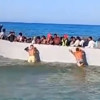 Görüntülerde bel seviyesine kadar suya giren turistler öfkeli bir şekilde mülteci teknesini itiyor. Mültecilerin Libya'dan geldiği kaydedilirken görüntünün Gavda'daki Sarakiniko plajında çekildiği de belirtildi.