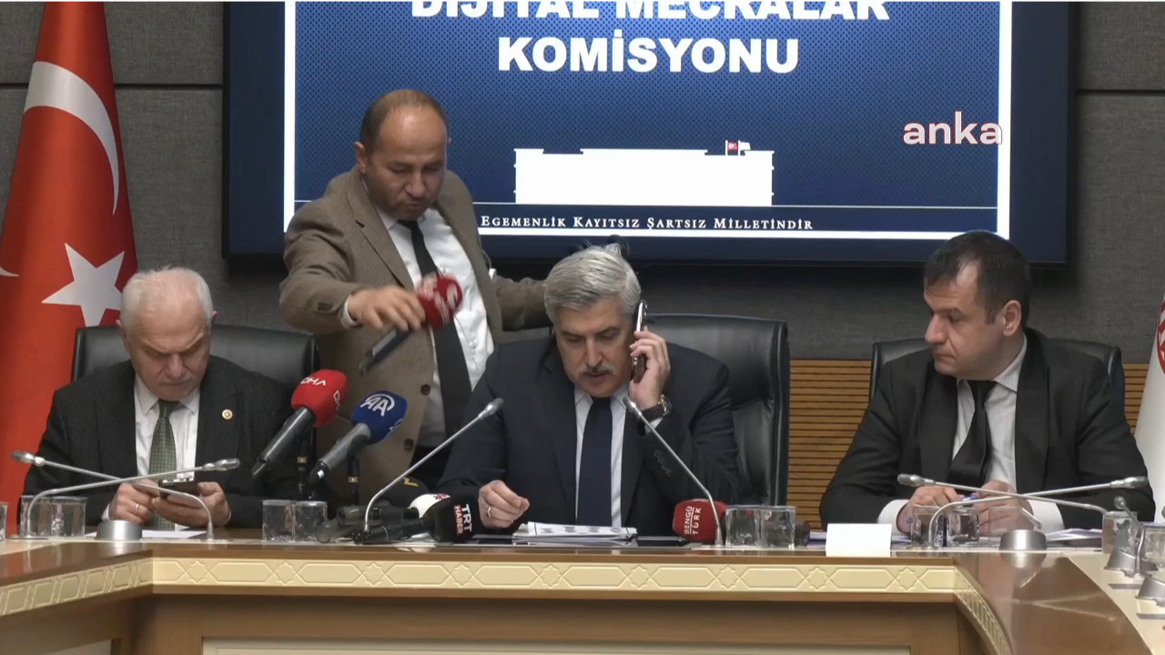 Komisyon Başkanı Yayman daha sonra toplantı salonundaki üyelere dönerek “5 dakikanızı rica edeceğiz arkadaşlar. Toplantıya başlıyoruz. Vekillerimiz, geç bittiği için Meclis… Zaten toplantıyı açmadım…” ifadelerini kullandı.