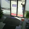 Yanında getirdiği mermer parçasını defalarca iş yerinin camına atan kişi, daha sonra yerden bulduğu parke taşını da art arda fırlattı.