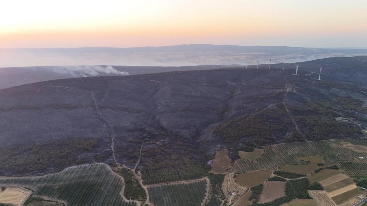 Tekirdağ'ın Şarköy ilçesindeki yangın nedeniyle, ormanın yanarak siyaha büründüğü görüldü.