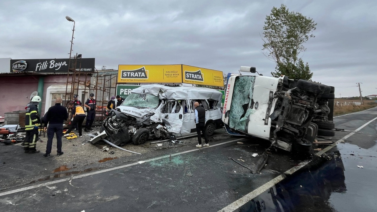 Tekirdağ'ın Ergene ilçesinde işçileri taşıyan minibüs ile kamyonun çarpışması sonucu 3 kişi hayatını kaybetti, 7 kişi yaralandı.